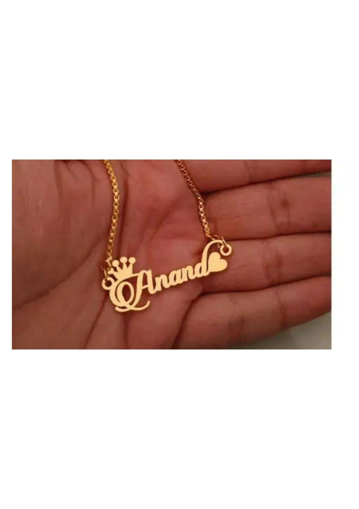 Showcase your individuality with this custom name pendant necklace featuring the name “Anand” in an elegant gold-plated finish. The design includes a stylish crown on the initial and a delicate heart at the end, symbolizing royalty and love.